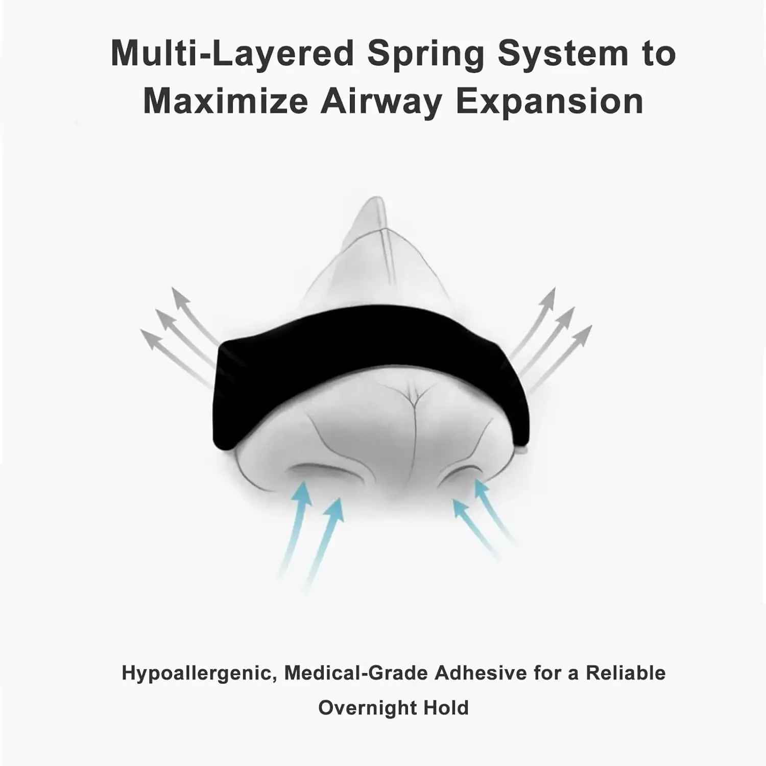 Comfortable nasal opening tape that helps reduce snoring, improve airflow, and support restful sleep — all without gadgets or mouthpieces.