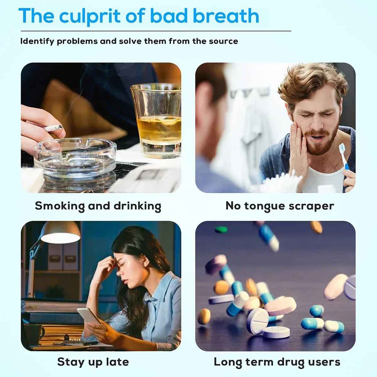 The tongue traps bacteria, food particles, and residue that toothbrushes can’t reach and mouthwash only masks. So even with a solid routine, odor can linger.